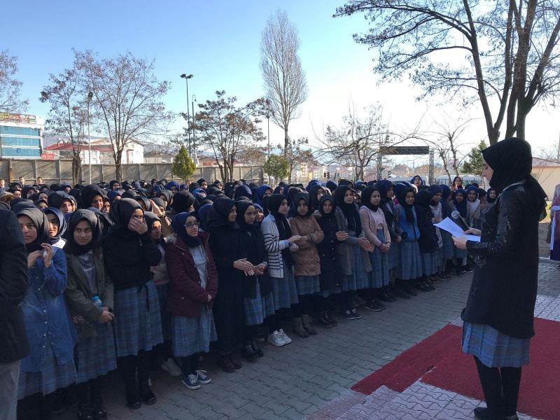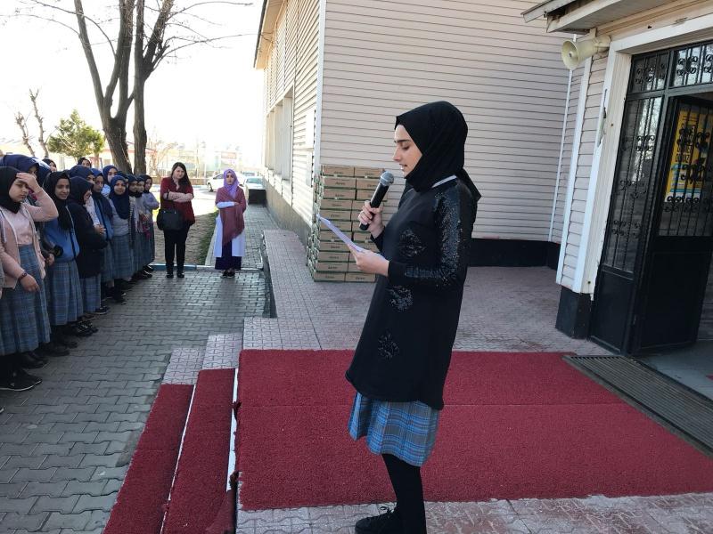 Okulumuzda 12 Mart İstiklal Marşı´nın Kabulü ve Mehmet Akif ERSOY´u Anma Günü kapsamında etkinlikler düzenlendi. Saygı duruşu ve İstiklal Marşı´nın ardından Türk Dili ve Edebiyatı öğretmeni Uğur BAYKARA koordinatörlüğünde yapılan etkinliklerde Günün Anlam ve Önemini belirten konuşmalar yapıldı. Şiirler okundu. Mehmet Akif ERSOY´un hayatını ve kişiliğini anlatan konuşmalar yapıldı. Etkinliğe öğrenci ve öğretmenlerin ilgisi oldukça yoğun oldu.